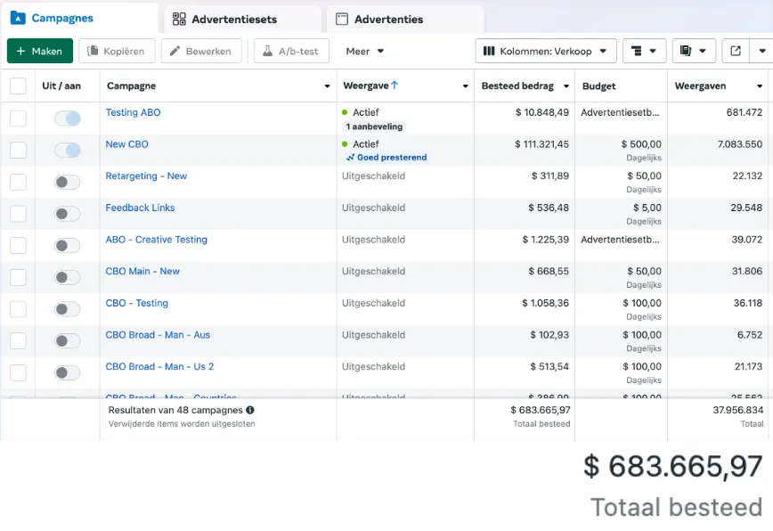 Geen probleem we starten altijd met een grondige analyse van je huidige campagnes. Daarna gebruiken we AI om nieuwe varianten van je bestaande creatives te genereren en te testen. Vaak zien we binnen enkele weken al betere resultaten met lagere kosten per aankoop.